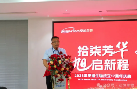 在杭州主会场,安旭生物董事长兼总经理凌世生发表了重要讲话,他指出:这场精心准备的生日视频巡礼很有创意,这些珍贵的画面,记录了我们的创业艰辛、技术突破、市场开拓的足迹,这每个帧影像都是安旭人共同记忆的缩影。回望“Assure”的起点, 这个名字承载着我们最初的梦想与承诺,我们希望工作质量、产品质量、研发质量、客户质量都能够进行承诺和保证。中文名“安旭”,安代表代表稳健、可靠、守护安康,同时跟我个人的家乡有一定渊源,“旭”象征如旭日东升般的蓬勃生机与无限希望。十七岁,对一个人而言,是朝气蓬勃、迈向成年的关键时期。对于安旭来说,这同样是一个充满无限可能的新起点。感谢一路相伴、给予我们信任与支持的客户朋友们、合作伙伴们!